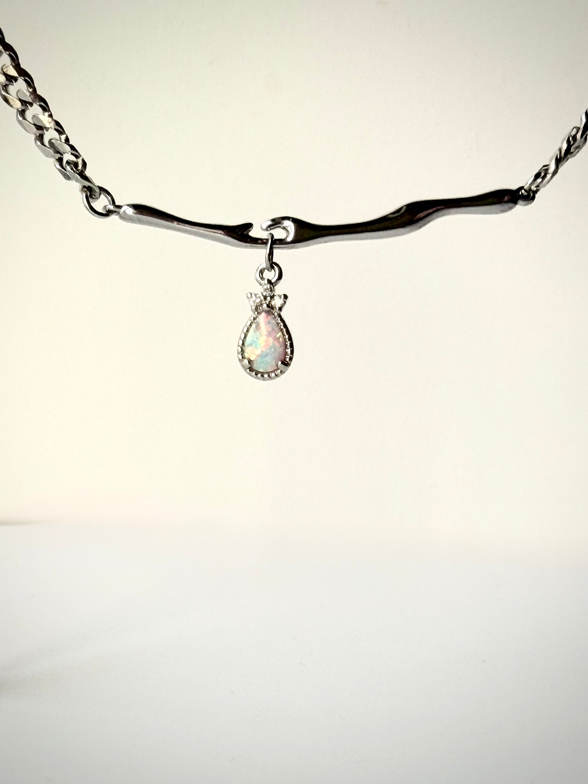 Material: Stainless Steel Chain + White Gold-Filled Bar + White Opal Teardrop Charm